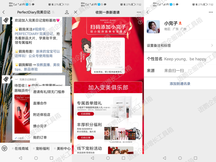 a、定制添加好友路径: 首先,需要根据企业拥有的传播和流量资源来判断哪些地方可能吸引潜在客户,包括门店流量、线上公域流量、公众号、小程序,甚至抖音等渠道。这些资源都可以用来引导客户进入企业的私域,以进行更为统一的运营和维护。如果企业初入私域赛道,对引流路径尚不清晰的也可联系语鹦企服提供方案参考。