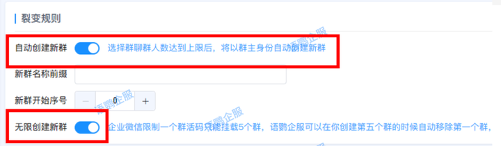 操作方法很简单,企业可借助第三方工具箱——语鹦企服的「无限群活码」来创建永久有效的群活码,只需登录语鹦企服的后台,在「引流获客」-找到「无线群活码」,点击创建进入编辑页面,选择想要创建群聊码的群聊,并开启自动创群和无限创建群聊开工,之后按需进行编辑群名称和序号设置即可创建。