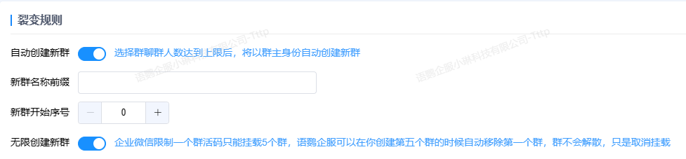 利用语鹦企服的「进群活码」可以实现新群自动命名,方法很简单,只需要登陆语鹦企服后台,找到「无线群活码」,点击创建来到设置页面,在「裂变规则」一栏提前编辑好新群名称,之后自动创建的群聊就会自动添加标号,无需再手动修改。