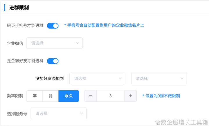 以上就是关于《企业微信通讯录黑名单怎么添加?怎么限制用户加入企业微信群聊?》的解答了,语鹦企服的「关键词进群」功能不仅提高了群成员的质量,还加强了群聊的管理效率,是企业微信群聊管理的得力助手。想了解更多关于语鹦企服的功能玩法,欢迎关注语鹦企服!