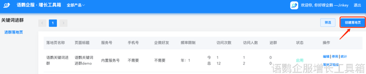 并且企业还可以通过「关键词进群」的落地页中的「统计」功能,查看落地页链接数据,以便企业可以更好地了解客户引流情况,包括哪些关键词或主题吸引了更多的客户,这有助于企业调整其引流策略和具体的运营方法。