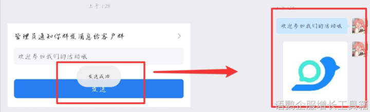 企业可以借助语鹦企服的「定时群发SOP」功能在直播前预先设置好内容。一旦直播时间到了,员工就会收到发送提醒,只需一键点击即可将内容发送到社群中,企业也可以选择私发给客户,及时提醒特定用户参与即将开始的视频内容。通过这种方式,企业可以更好地吸引用户关注和参与直播活动,进一步扩大私域流量池。