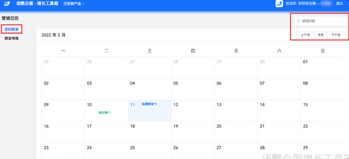 企业可以使用语鹦企服的「定时群发」功能,提前为朋友圈活动创建内容,并按照活动开始前的时间节点安排好发布。通过连续的内容更新,活动气氛逐渐升温,吸引更多关注者。最终在活动正式开始时,可以迅速爆发,吸引大量客户参与,提高销售量。