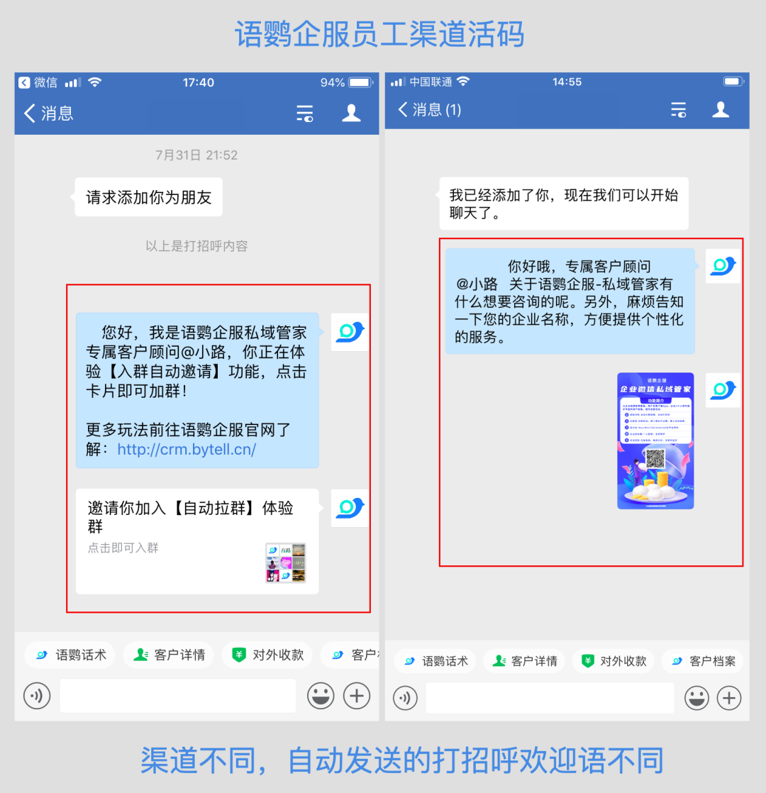 对于不同渠道的员工活码,还可设置给不同渠道的客户自动发送不同的欢迎语,实现渠道差异化精细化运营。