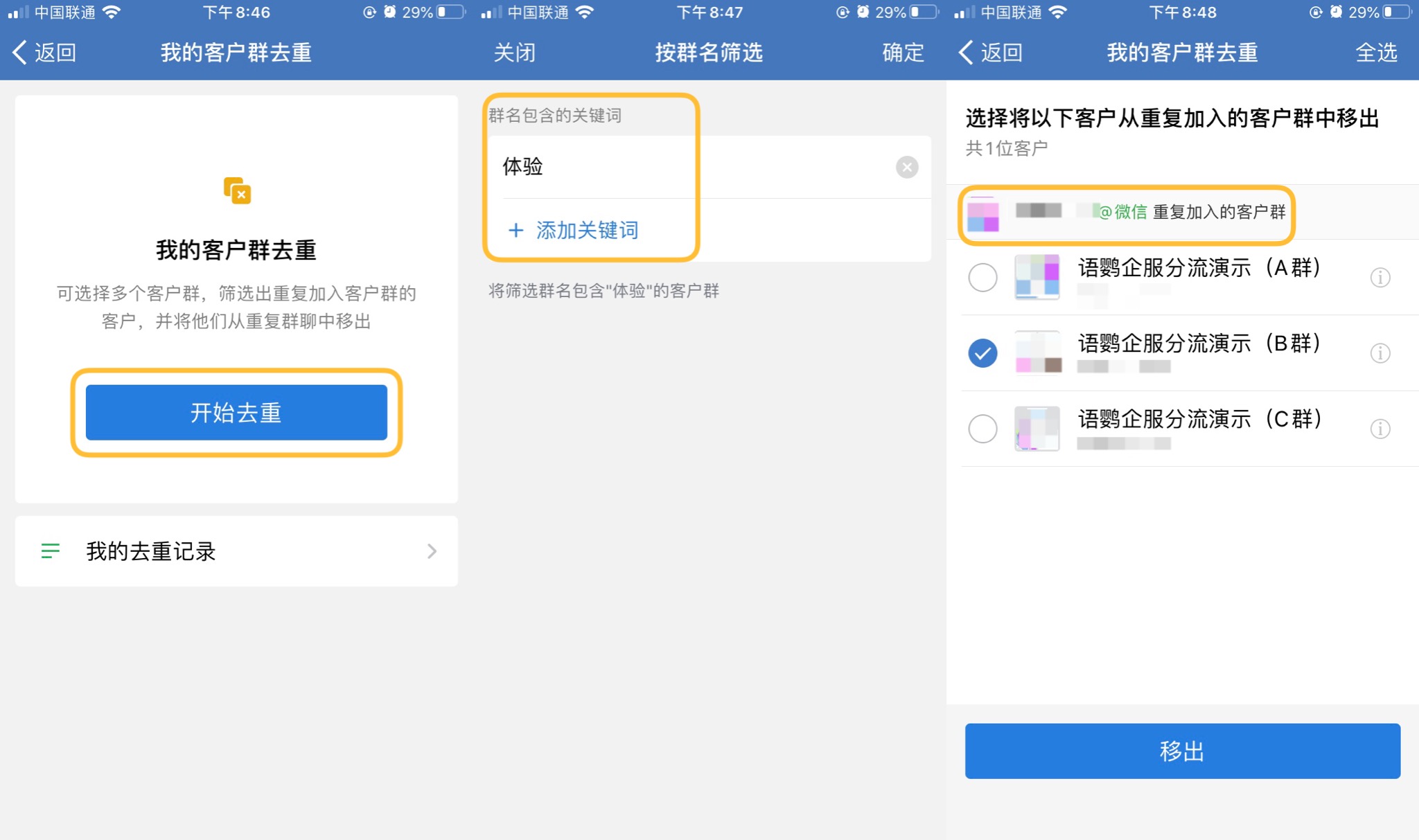 很多时候一不留神,客户就加入了我们很多个企业微信群。一来没有必要,二来占用了客户群资源。有没有办法防止客户同时加入多个群?或者一键去重移除群成员呢?今天语鹦企服就教你2个办法,让你的社群运营工作事半功倍!