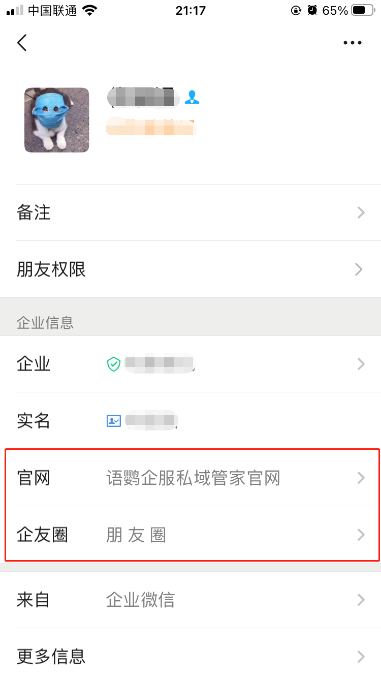 这时需要用到语鹦企服私域管家开发的企业朋友圈功能「企友圈」了。将企友圈添加到企业微信自定义外部信息字段后,即可拥有历史朋友圈入口。