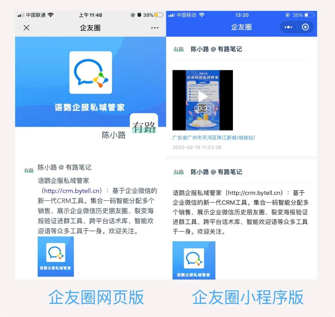 企友圈同时支持小程序和网页版,不仅可以无限次数发布朋友圈和视频,还可发布企业动态,由企业统一管理员工历史朋友圈。