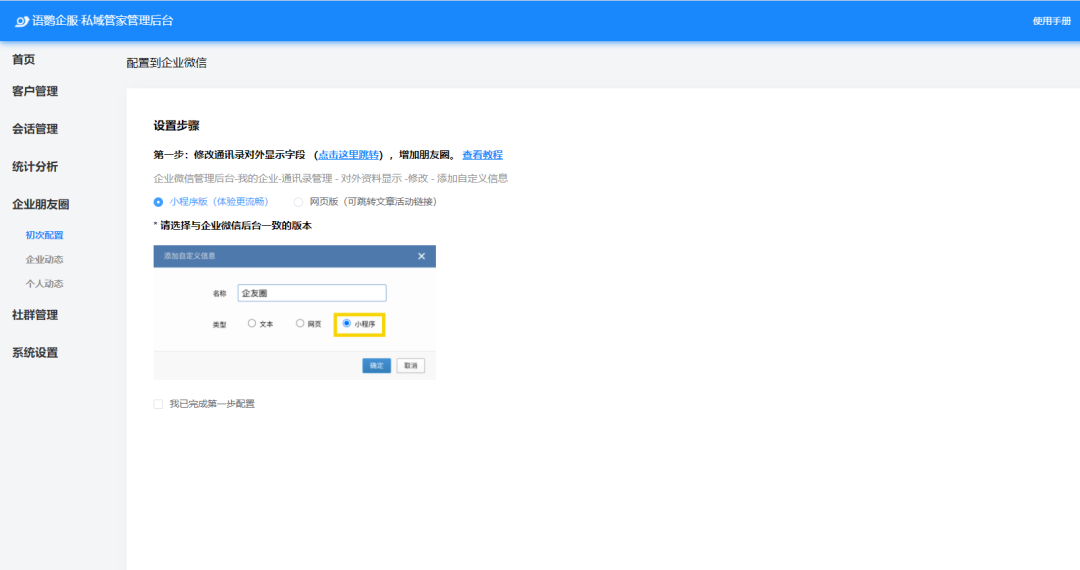 只需安装语鹦企服私域管家,并登录语鹦后台,按提示配置企业朋友圈即可,