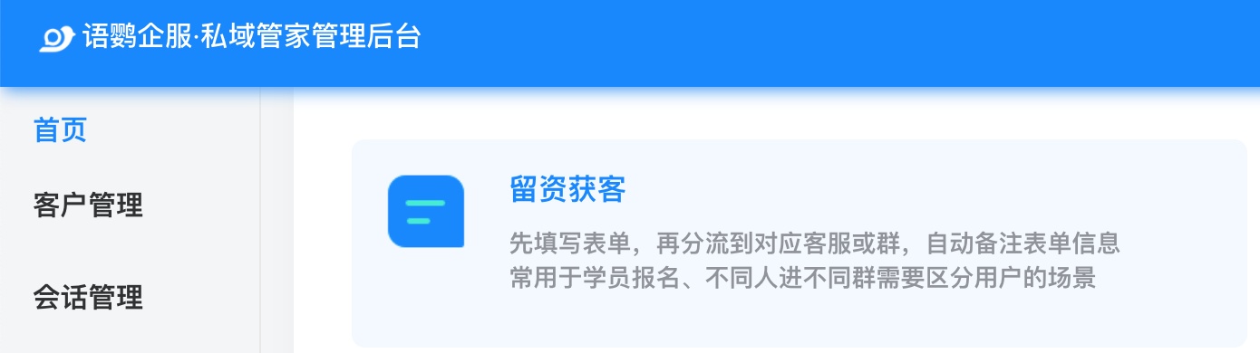 如果想要通过这样的方式将客户转化到企业微信,怎么操作呢?今天,语鹦企服私域管家上线的【留资获客】功能,就能帮到你!