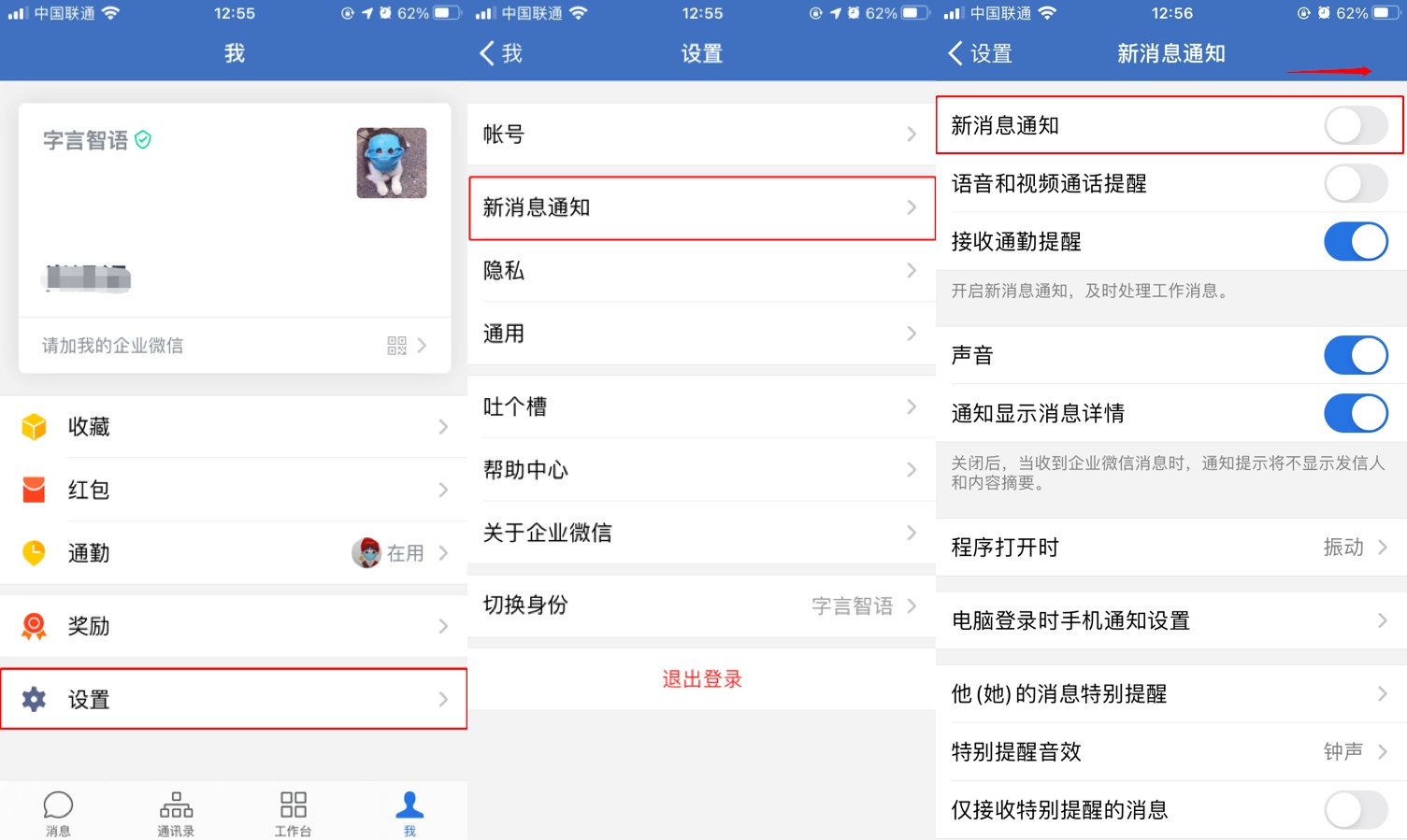 按照以上教程如果还是没有消息提醒,那么则需要在企业微信开启「新消息通知」。
