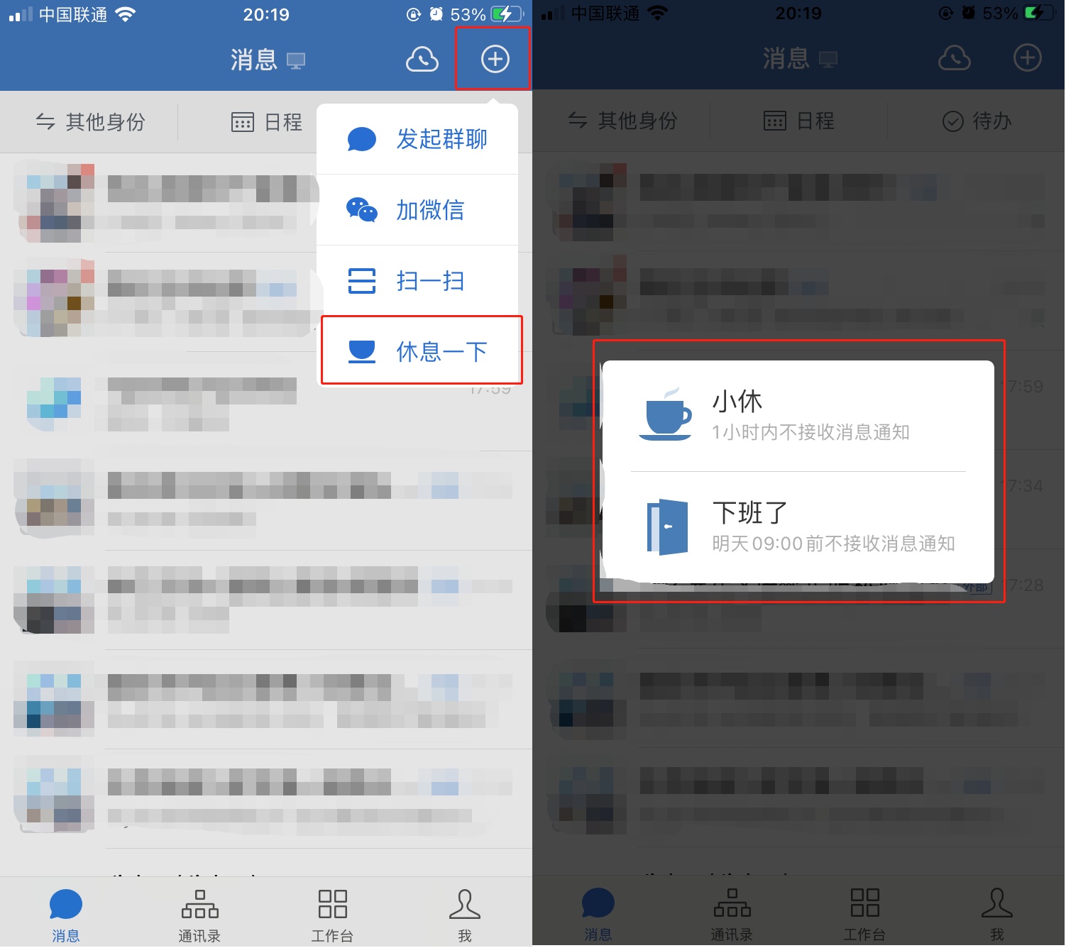 其实想要屏蔽同事消息,不被打扰的办法有两种。