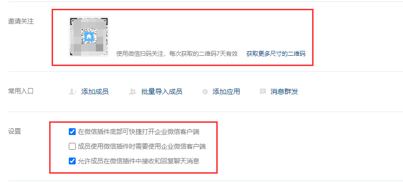 找到「邀请关注」,复制该二维码,发送给员工微信扫码关注即可。