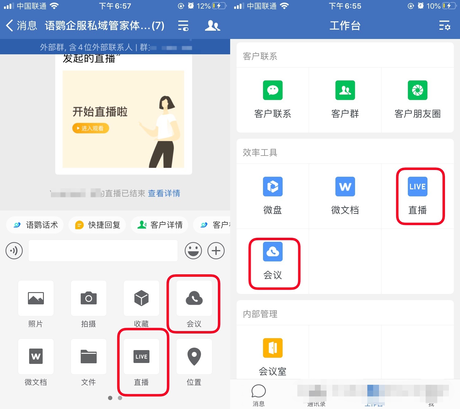 第三种:企业微信会议/直播互通