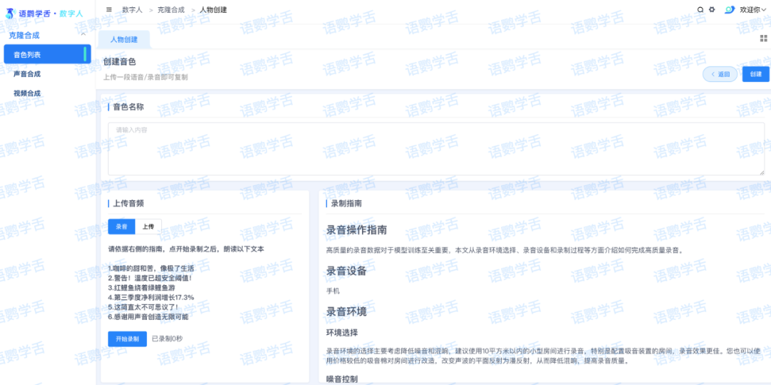 语鹦学舌AI数字人分身为这些困扰提供了完美解决方案。博主只需一次性录制简短的音频和视频素材,系统就能精准复刻出与本人相似度高达99%以上的数字分身。这意味着博主再也不用担心状态不好、化妆耗时或设备准备等问题,只要有想法有文案,随时都能生成高质量视频内容。