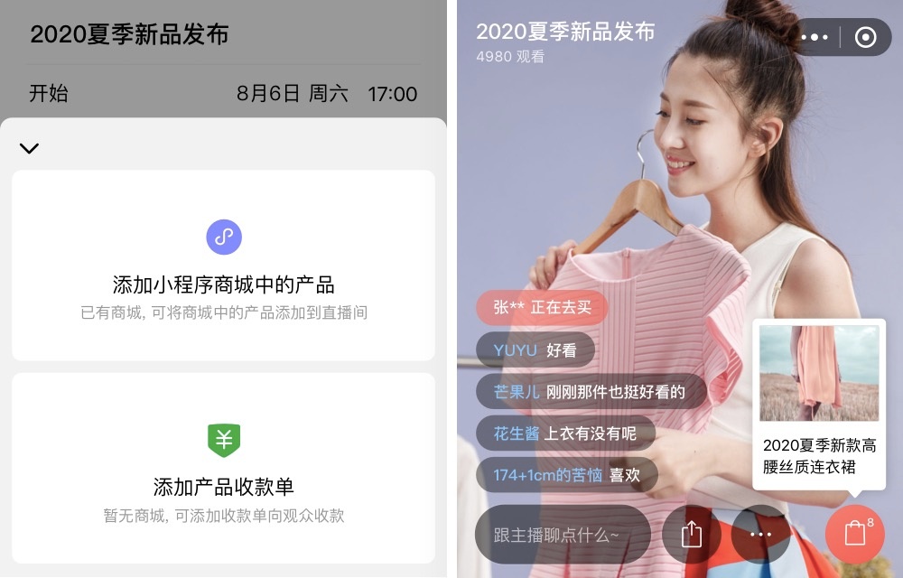 当我们拉进与群成员的关系之后,还可以开启直播,只需要点击对话框的「直播」按钮,一键开启直播,群里的小伙伴用微信就可以参与直播了。还可以分享直播链接邀请他人来观看直播领取优惠券。