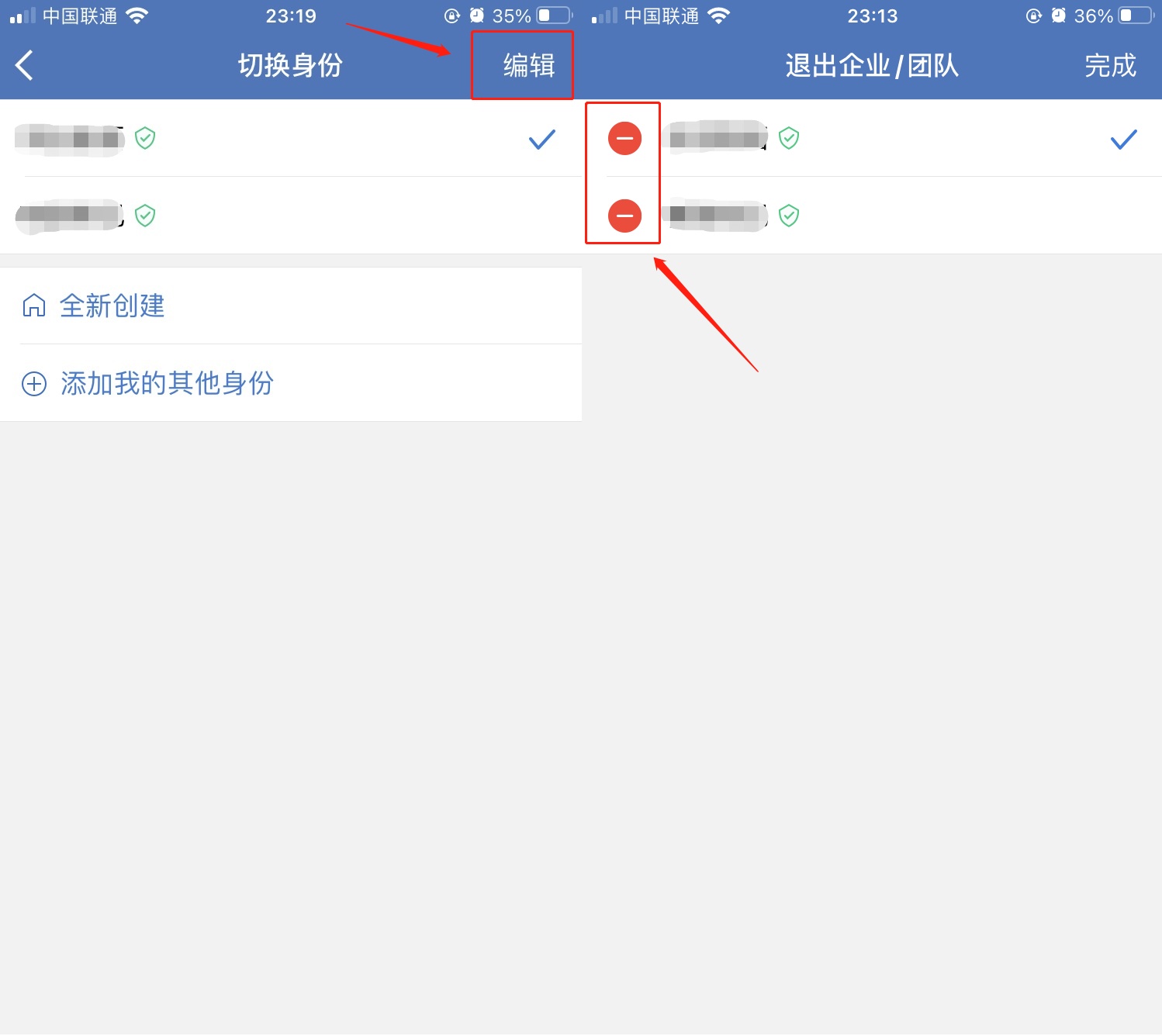 可以看到自己加入的所有企业,点击「编辑」,选择要退出的企业,点击「-」号;