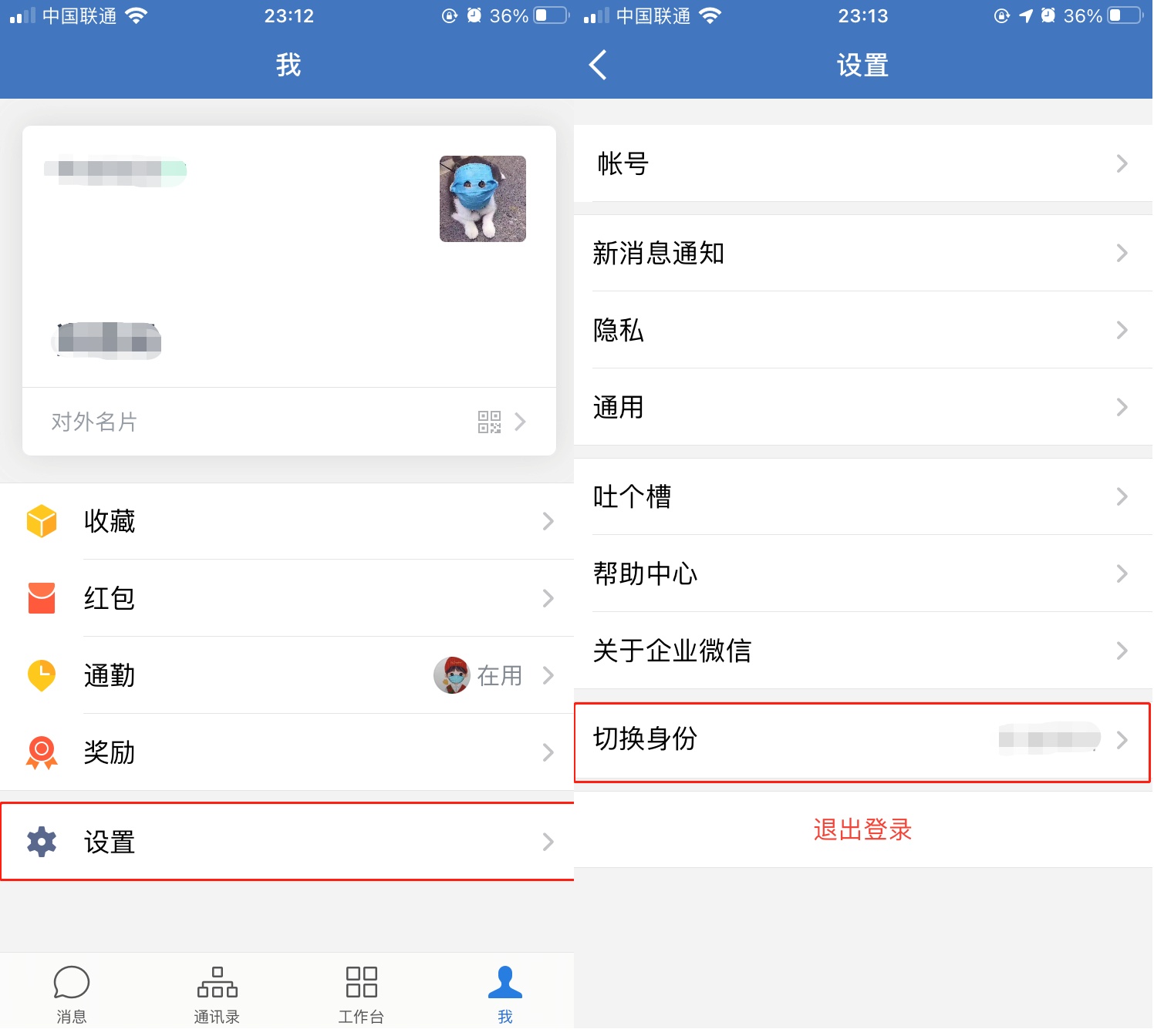 事实上,删除企业微信并不能彻底退出企业微信,需要通过以下方法退出。首先登录企业微信APP ,点击进入「我」 – 「设置」 – 「切换身份」页面;
