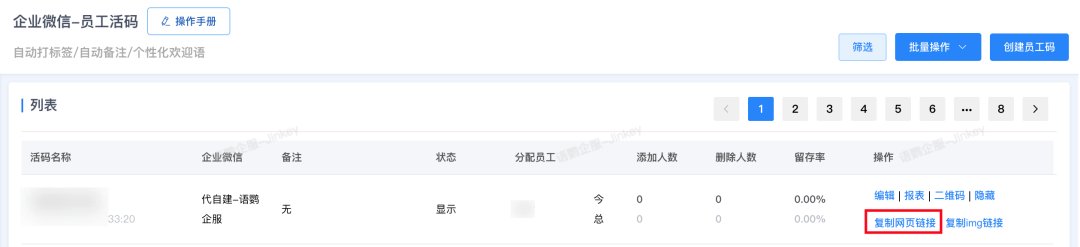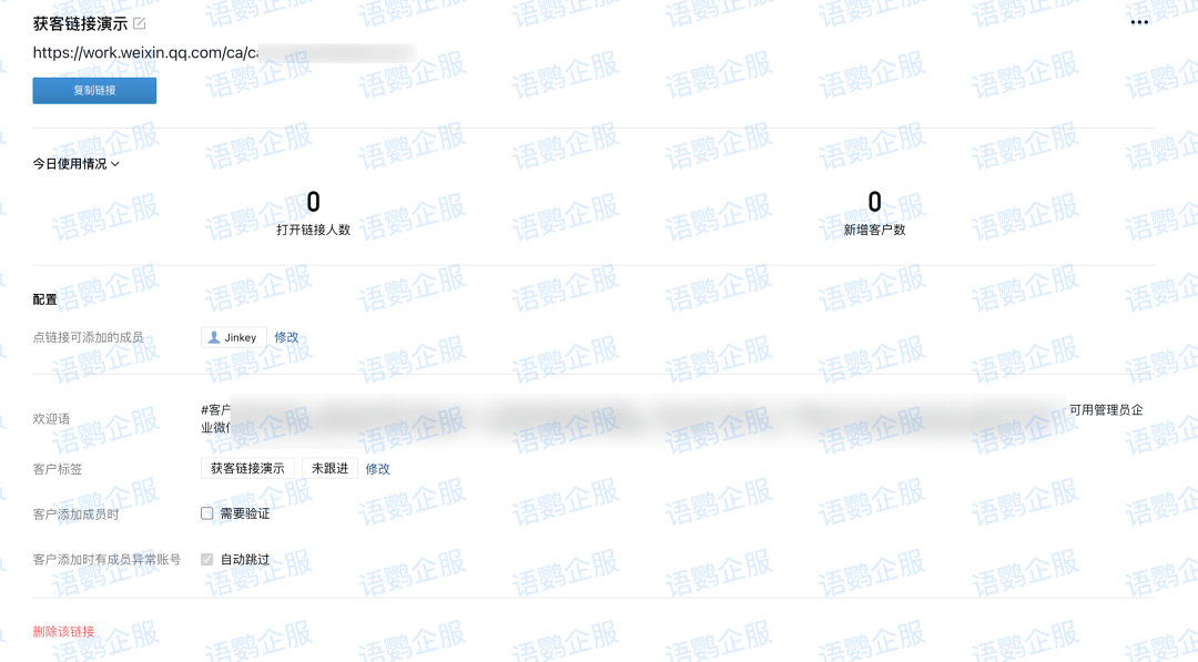 开通操作非常简便,登录语鹦企服后台,在功能列表中找到「加粉链接」模块,按提示创建即可生成可分发的短链接。另一种方式是通过「员工活码」功能,点击「复制网页链接」来获取对应链接。