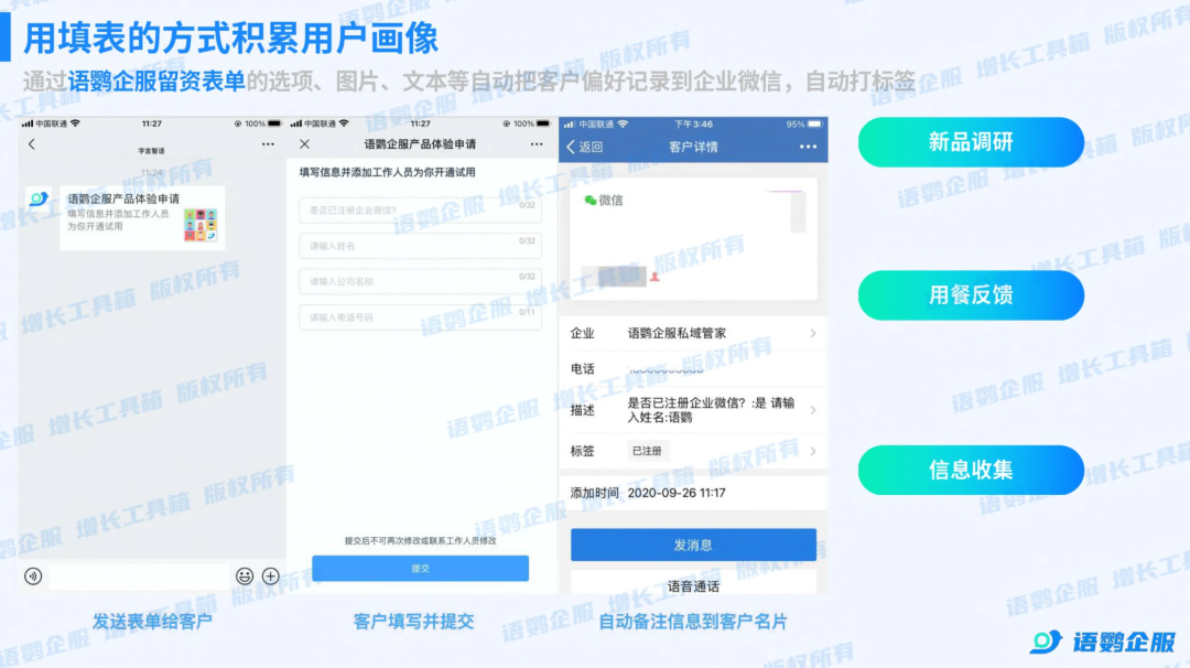 要打破这种僵局,必须将静态消费记录升级为动态的互动标签。在顾客光临专柜时,柜姐可以巧妙运用语鹦企服的留资表单功能。将表单包装成“专属肤质定制检测”或“限量新品派样申领”活动,引导顾客手机扫码填写肌肤问题与护肤习惯。顾客勾选的每一个选项,都会被语鹦企服系统瞬间转化为企业微信名片上的专属标签。