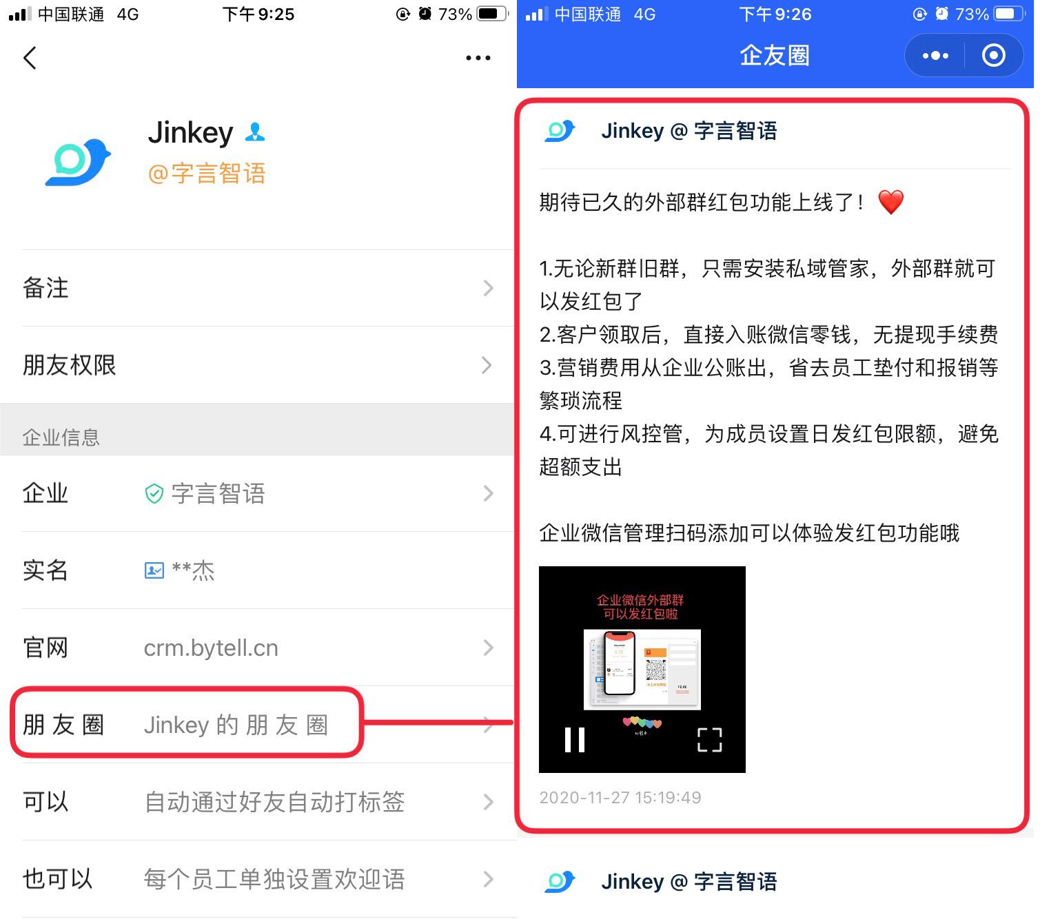 以上就是《企业有朋友圈吗?以及企业微信可以看到其他人的朋友圈吗?》的答案了,语鹦企服的朋友圈不仅让客户可以查看我们的历史朋友圈,并且还没有发送限制,简直是解决了大家的燃眉之急,有需要的小伙伴快来体验吧。更多企业微信玩法,欢迎关注语鹦企服私域管家博客。