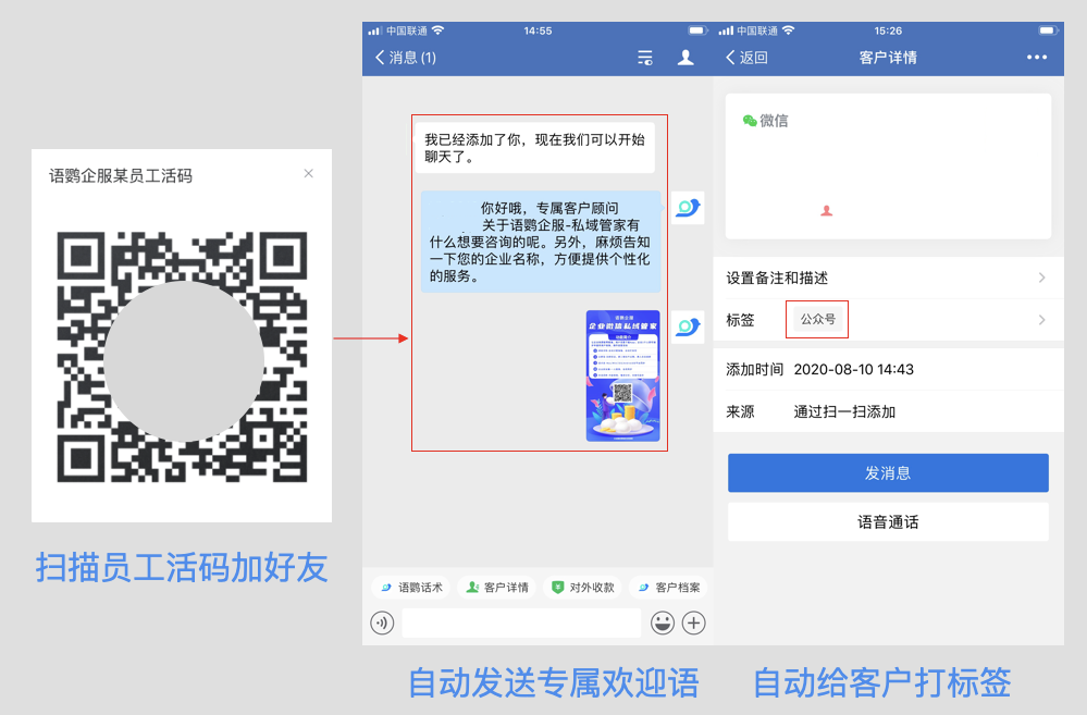 既然企业微信对加人如此严格,那么企业微信管理者如何在突破这个限制的同时,又能保证企业微信账号的安全呢?在这里推荐大家使用语鹦企服的员工活码,既能突破企业微信加人的限制,又能对添加企业微信的人进行自动发送欢迎语、打标签备注和描述功能,可谓是一举四得。
