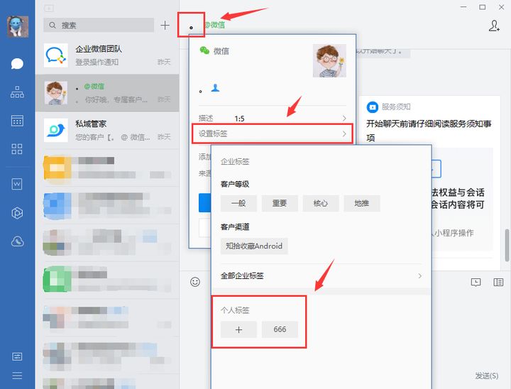 1、企业微信PC端,可以在我们和客户聊天的页面。点击客户昵称,给客户添加个人标签。