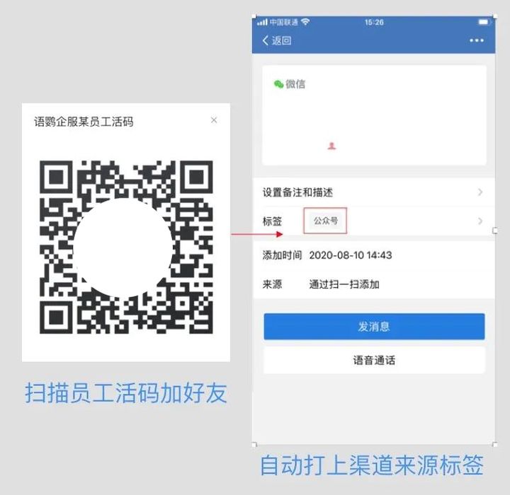 并且通过语鹦企服的员工活码,能够实现对客户的分流,避免因为客户的数量增多而无法添加的情况,造成客户的流失。还支持自动添加备注和描述,当通过员工活码添加好友时,自动给该好友打上备注和描述,更方便企业更精准的管理。