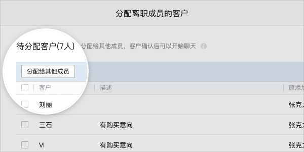 通过企业微信的离职继承功能把离职员工的客户分配给在职员工后,继承员工如何了解过往情况快速接手工作呢