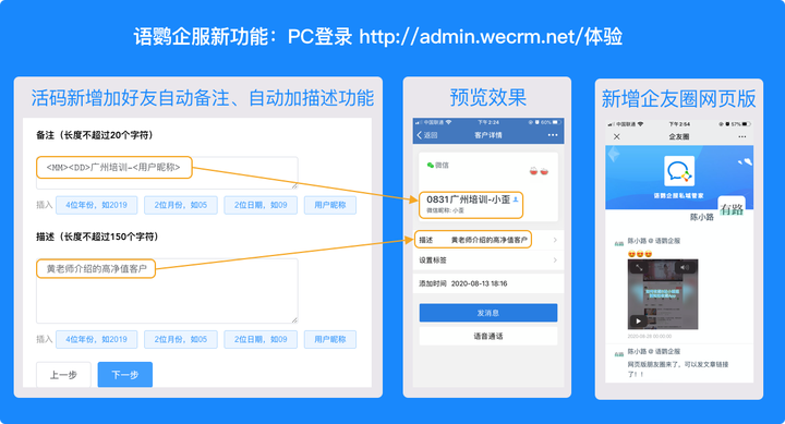 除此之外,语鹦企服员工活码还有自动打标签备注、自动发送进群邀请等优点,帮助企业高效运作。