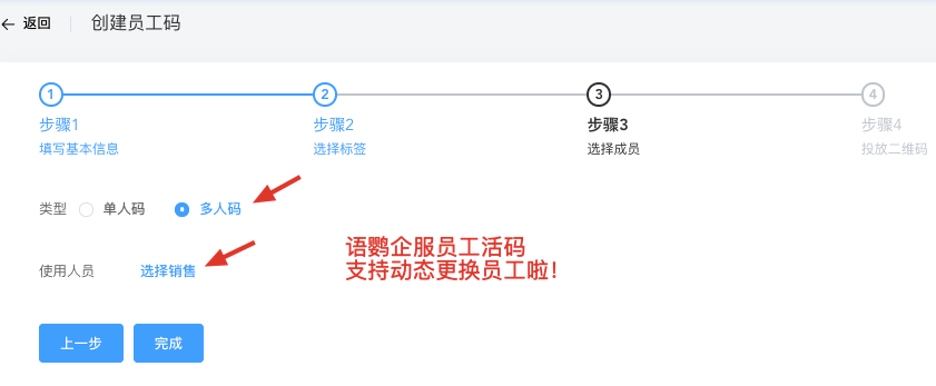 语鹦企服的员工活码,一个活码就可以关联多个员工账号,客户扫码后随即分配员工进行添加,并且还支持动态更换接待员工,更换后,对外投放的员工活码也会自动实时更新。这样就能够实现被动引流,无限制承接客户,避免了客户的流失。