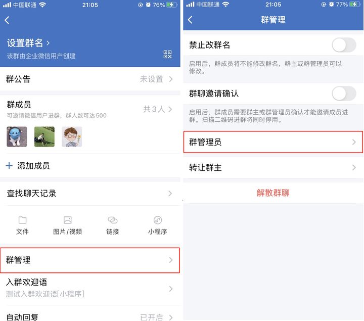 不过企业微信群最多只能存在3个群管理员哦,所以这时群主只能再添加3位管理员了