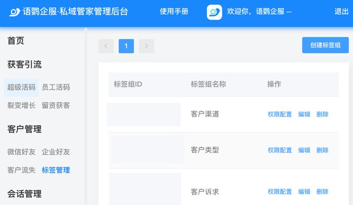 本次更新,支持企业在语鹦后台创建标签组,并按标签组实施权限控制了,即便不是企业微信超级管理员,也可灵活编辑标签,配置更方便了。