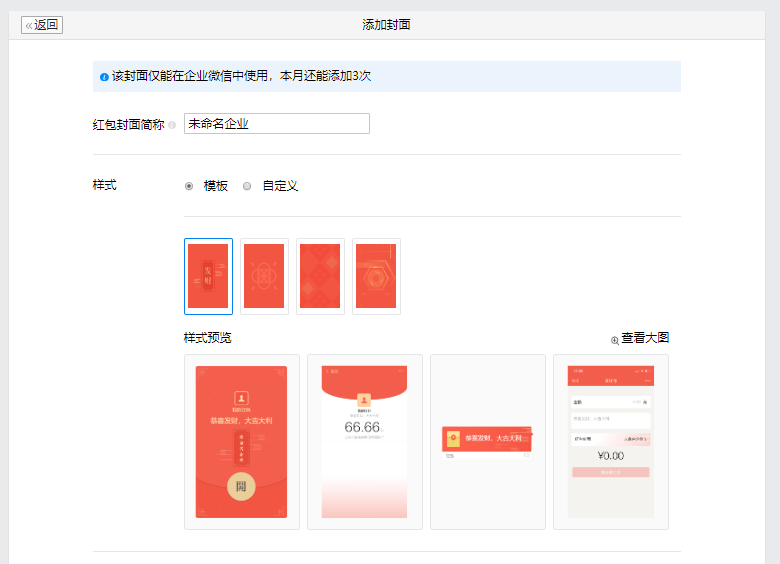 接着,在添加封面的页面设置红包封面简称、样式等就制作成功了。