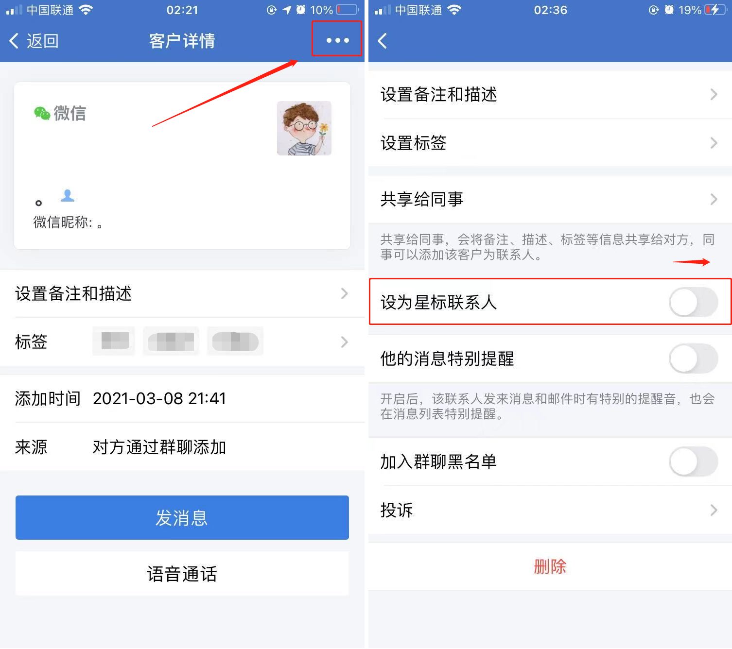 当我们跟进完企业微信的重要项目后,之前设置的星标联系人就不需要了,那么可以将星标设置取消吗?