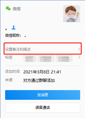 电脑端也可以进入客户打备注和描述。在电脑端企业微信通讯录里找到客户,双击进入与客户聊天的对话窗口,然后点击客户昵称,就可以进入编辑备注和描述的页面了。后续需要修改,也是按照这些步骤操作修改即可。