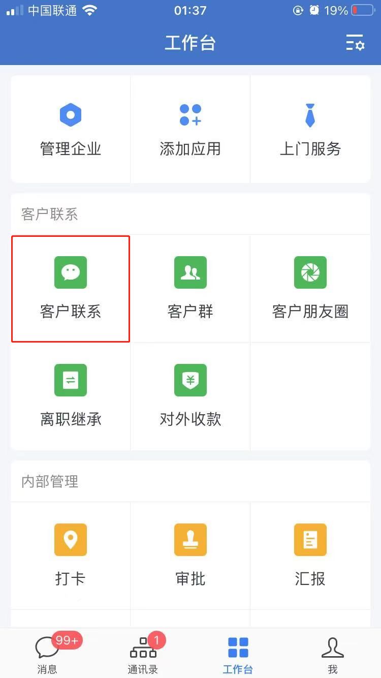 当企业客户数要达到上限时,超级管理员点击企业微信app-【工作台】-【客户联系】页面最下方的扩容提醒,就可以进行扩容了。成员客户数快达上限时,也可以在【工作台】-【客户联系】下方申请扩容。