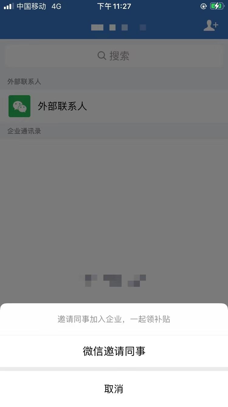 入口一:手机打开企业微信app,点击通讯录右上角“+”号,再点击【微信邀请同事】,跳转到微信后发送给想要邀请的同事即可。
