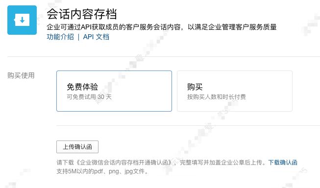 登录企业微信管理后台,点击【管理工具】,就会看到会话内容存档开通入口,按自己的需求选择免费体验或购买开通。