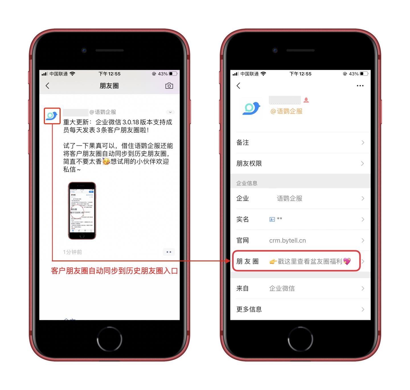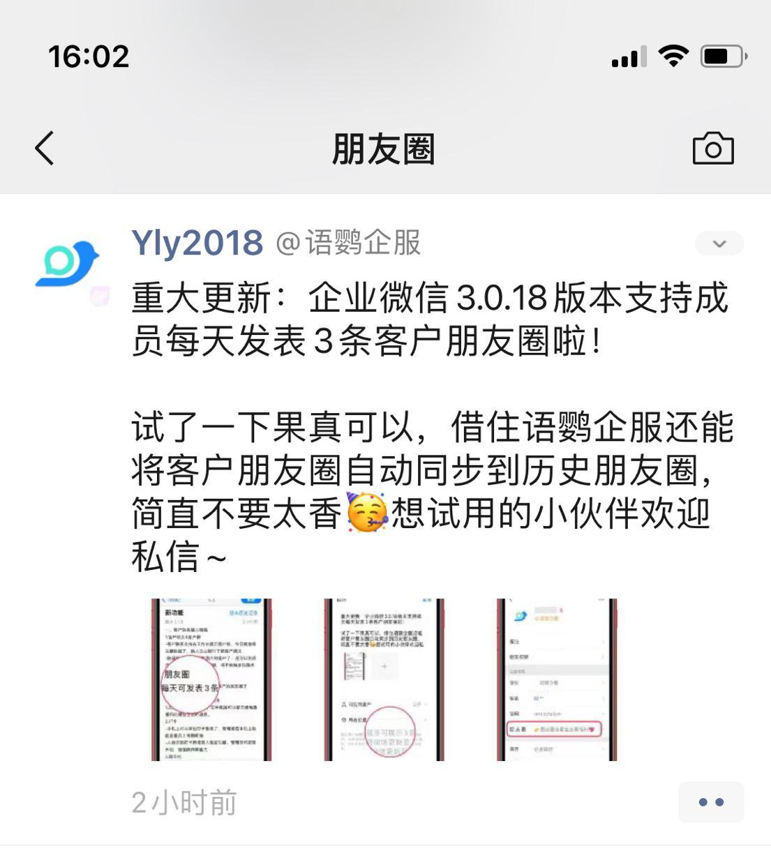 企友圈,你可以选择与微信朋友圈类似的网页版或流畅度更高的小程序版,不仅不限发布次数和视频时长,还能让客户查看历史朋友圈、一键转发等高级玩法,提高运营效率,满足精细化运营需求(私聊语鹦企服管家,可以免费试用企友圈功能哦)!
