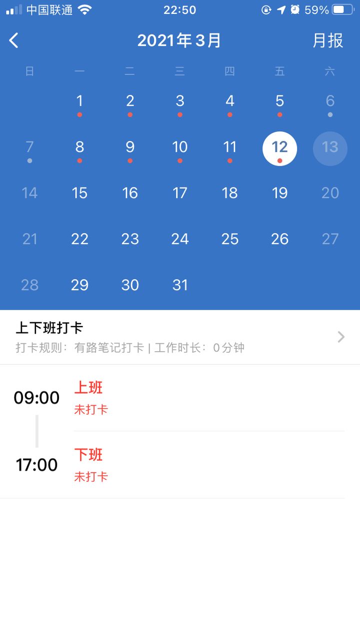 3、点击不同的日期就可以看到不同日期的打卡记录。