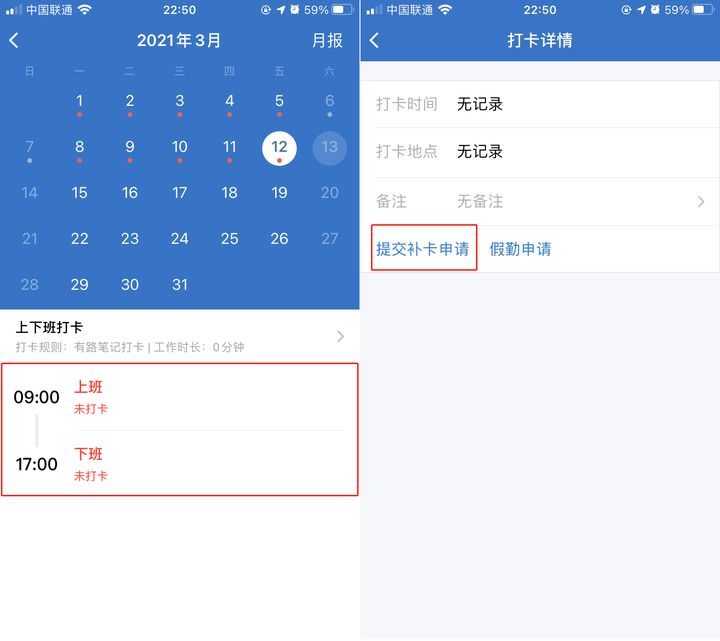 这个时候考勤状况就会异常,需要申请补卡。申请补卡的路径有哪些呢?