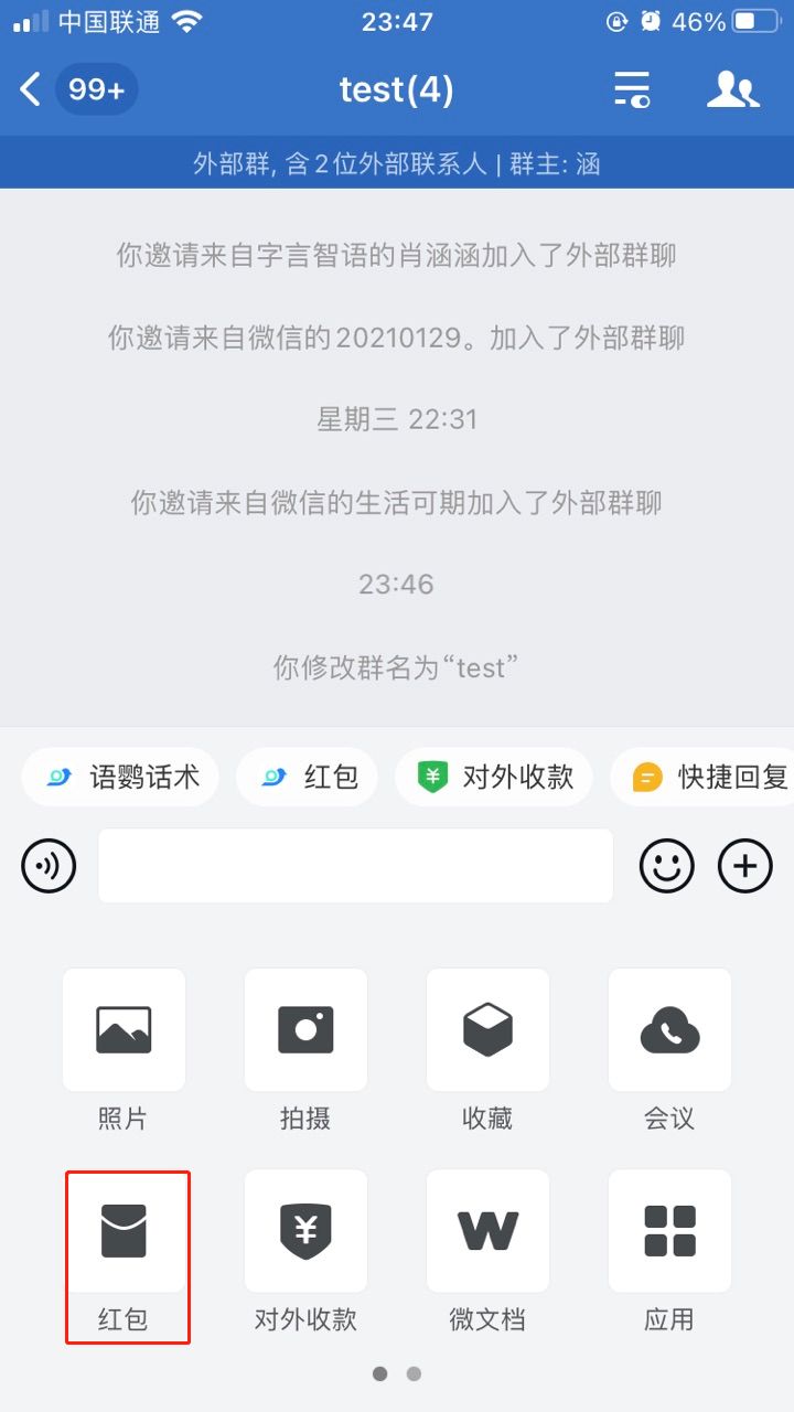为什么企业微信外部群发不了红包?