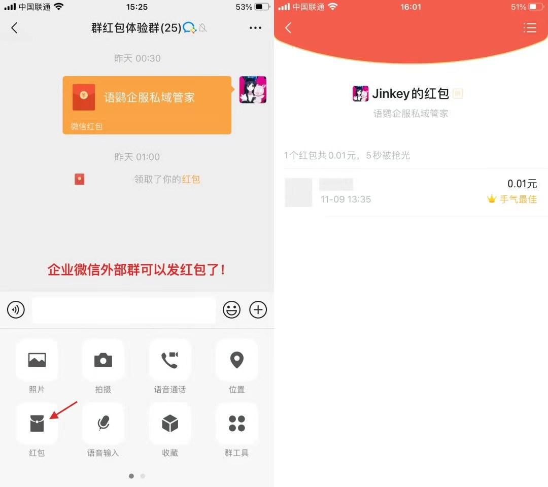自从企业微信更新到3.0.36版本后,企业微信外部群就可以发送红包了。如果你的企业微信外部群发不了红包,那么请确认以下两点: