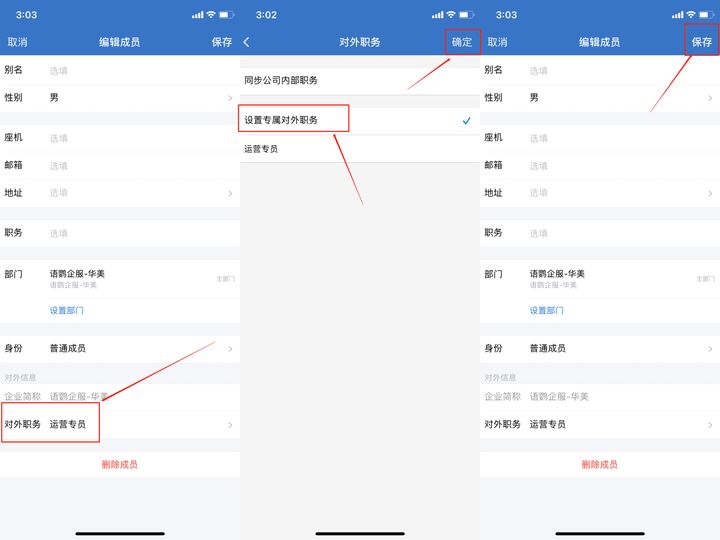 企业管理员可以对员工进行职务编辑,点击【通讯录】找到要设置职务的员工企业微信,点击右上角的【…】-【编辑成员】-【对外职务】-【设置专属对外职务】-【确定】-【保存】,就设置完毕了。