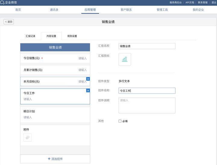 其它类型汇报,设置好之后在「工作台」-「汇报」处都可以找到。日报一般需填写每天完成工作内容、次日工作计划;营业报告一般用于分店,需要填写销售额和销量;自定义汇报比较灵活,可以根据企业管理需要自由创建,自定义模板。