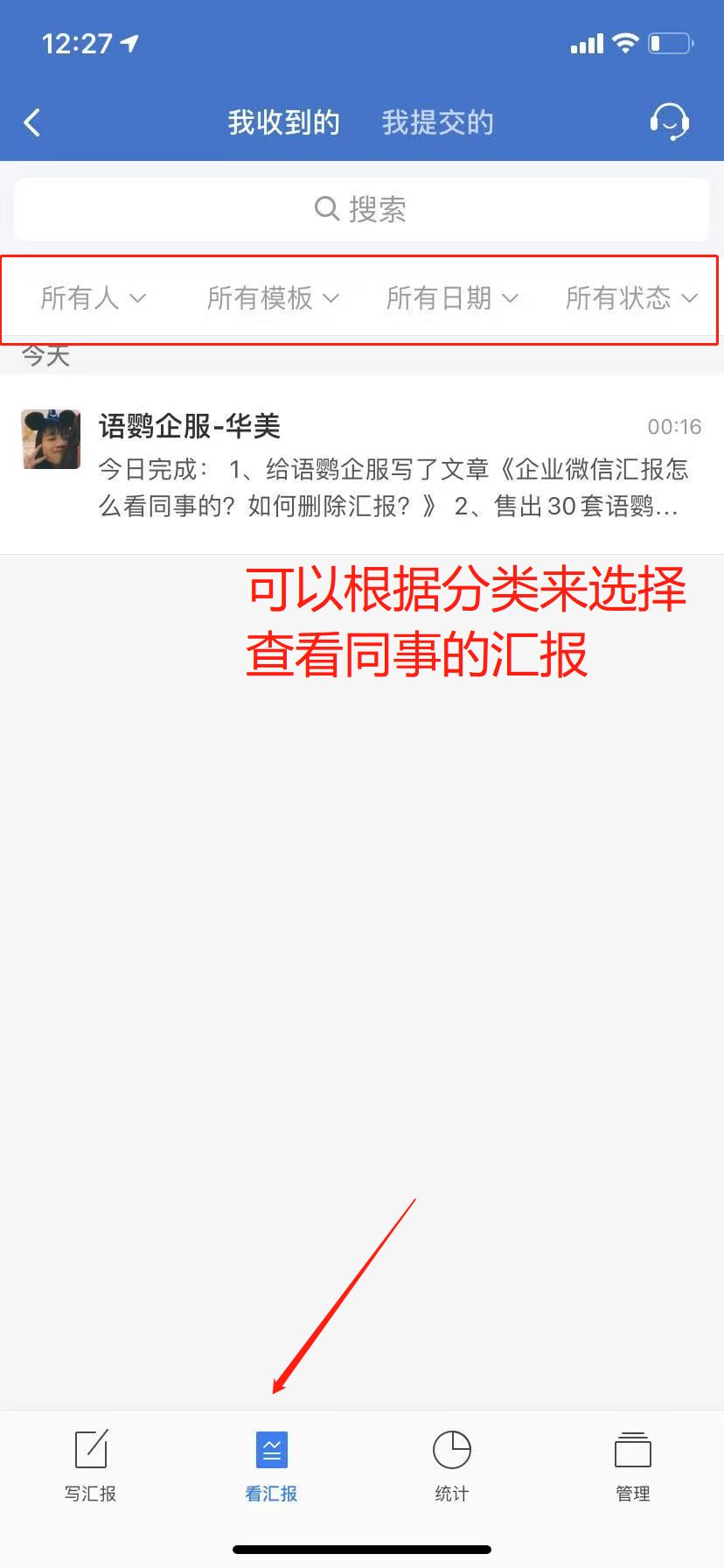 企业微信汇报怎么看同事的?