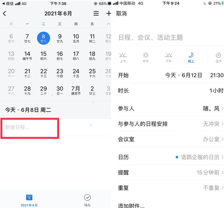 企业微信日程如何填写?