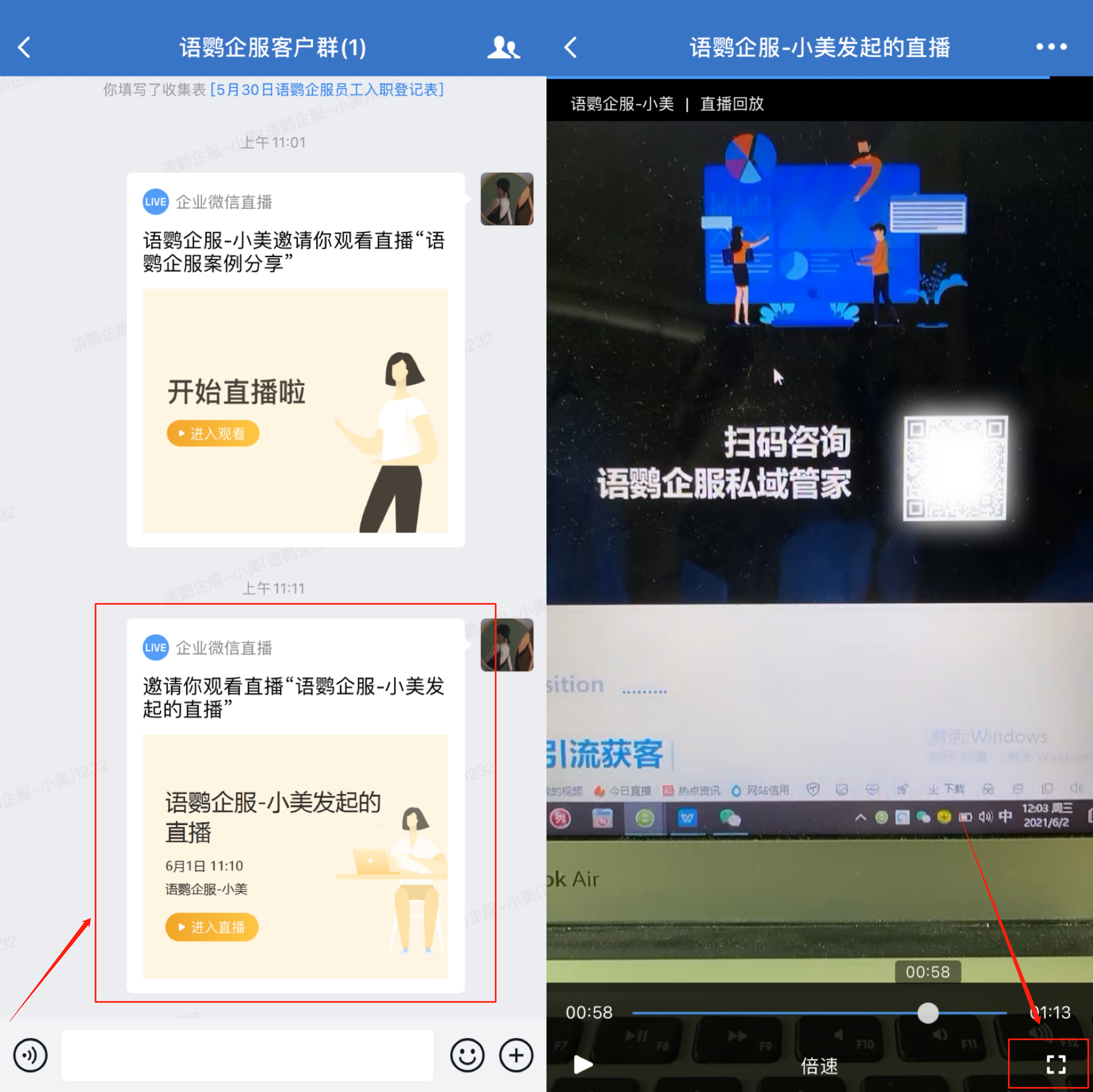 而且用户看直播也更加方便,不需要额外下载App,在个人微信打开小程序就能直接观看,那么企业微信直播怎么全屏?直播可以横屏吗?今天语鹦企服就带大家来看看。