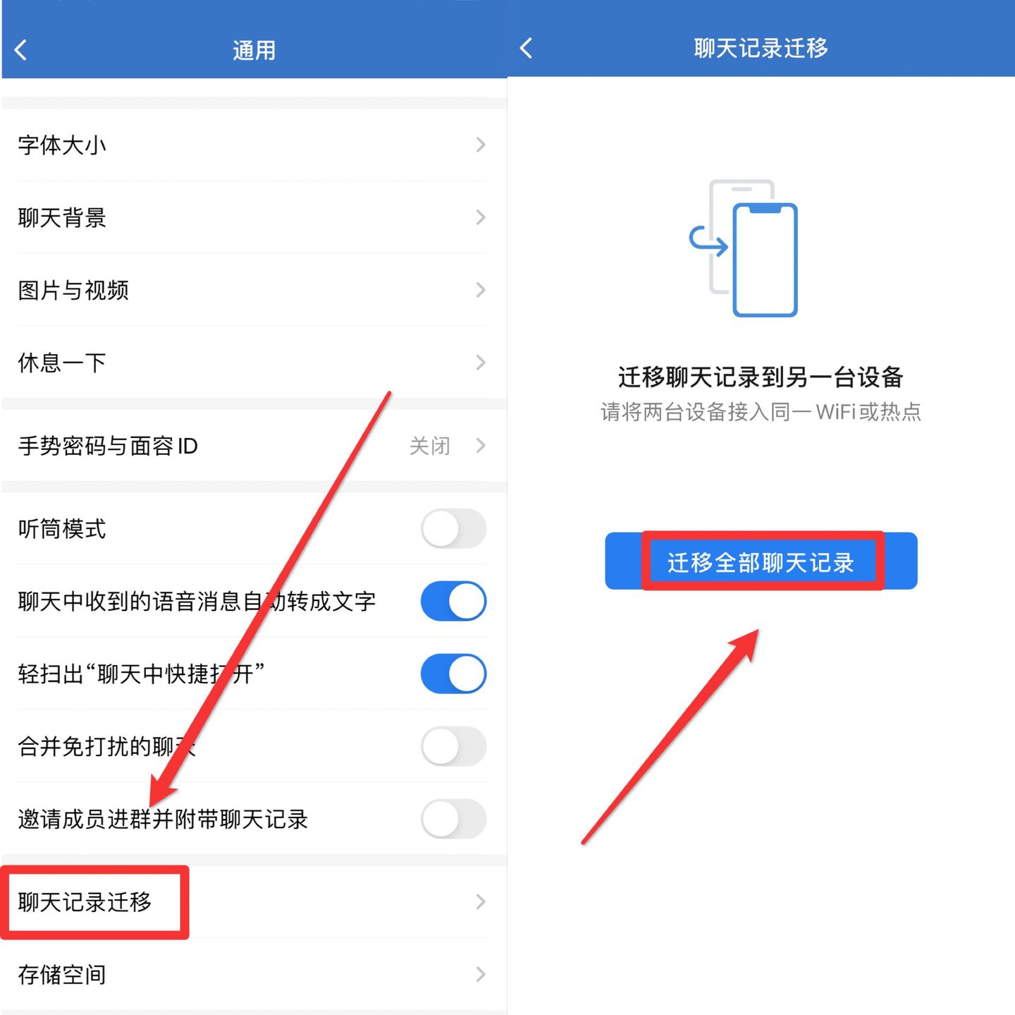 在迁移聊天记录过程中需要注意的是: