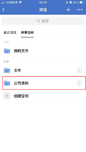 企业微信微盘的共享空间有两种形式,一种是微盘自带的公司资料共享空间,企业的全体员工均可查看。另一种是自创建的共享空间,只限部分员工查看。